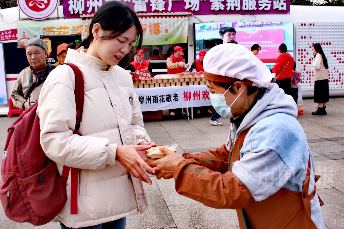 “走出火车站就遇见志愿者在分发福粥,切身感受到了柳州人的温暖与热情。”来自吉林的何女士接过福粥,笑容满满。何女士说,一直听朋友说柳州气候宜人、美食众多,一下火车果不其然。来到柳州,她计划去龙潭公园打卡游玩,还要品尝地道的柳州螺蛳粉,对此次柳州之旅,她充满了期待。