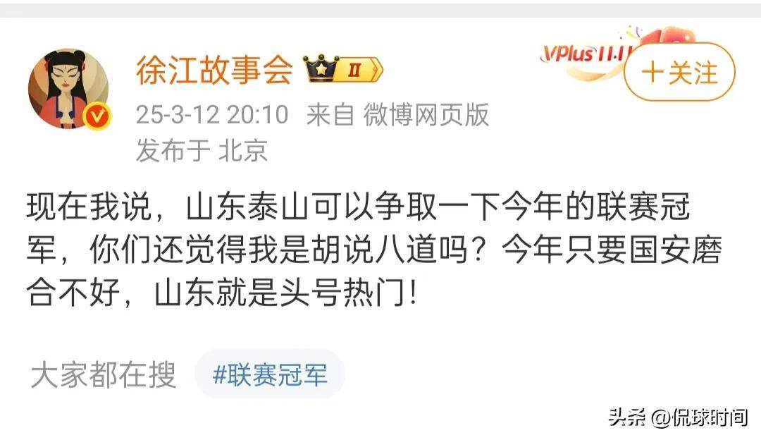知名体育博主徐江曾在本赛季中超联赛开赛之前预言,新赛季争冠最大热门是山东泰山队。上海海港和上海申花在亚冠连吃惨案纷纷被淘汰之后,博主徐江再次发文力挺山东泰山:山东泰山队可以争取一下今年的联赛冠军,今年只要北京国安磨合不好,山东泰山就是头号热门!